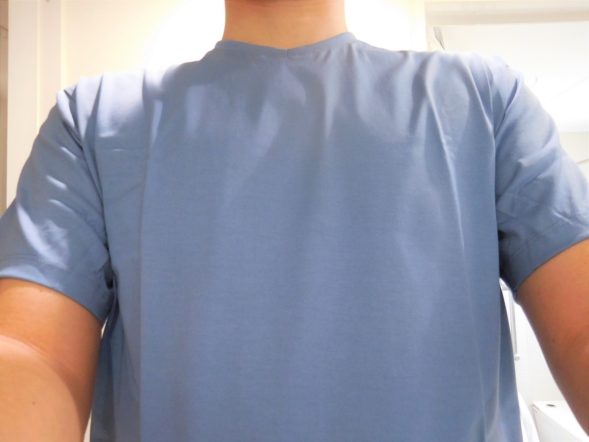 襟の縫製がしっかりとしているのがぱっと見た感じの印象ですね。この辺りが「仕事Tシャツ」と謳うだけあるということでしょう。