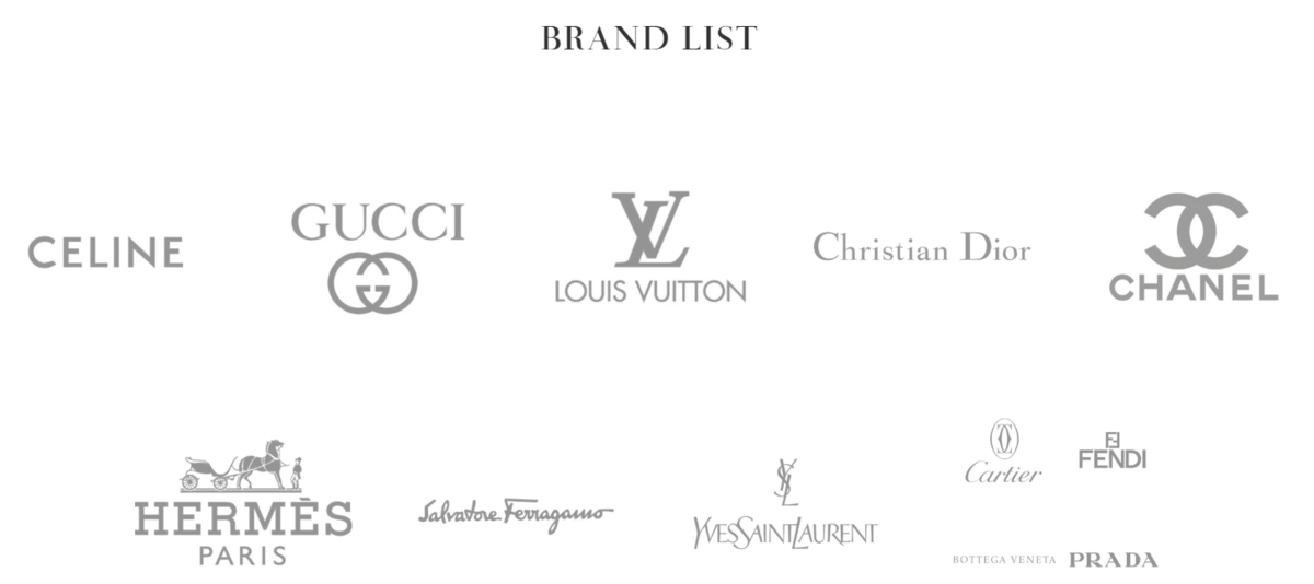 その取り扱いブランドは、「CELINE」「GUCCI」「LOUIS VUITTON」「Christian Dior」「CHANEL」「HERMES」「PRADA」など、多岐にわたります。